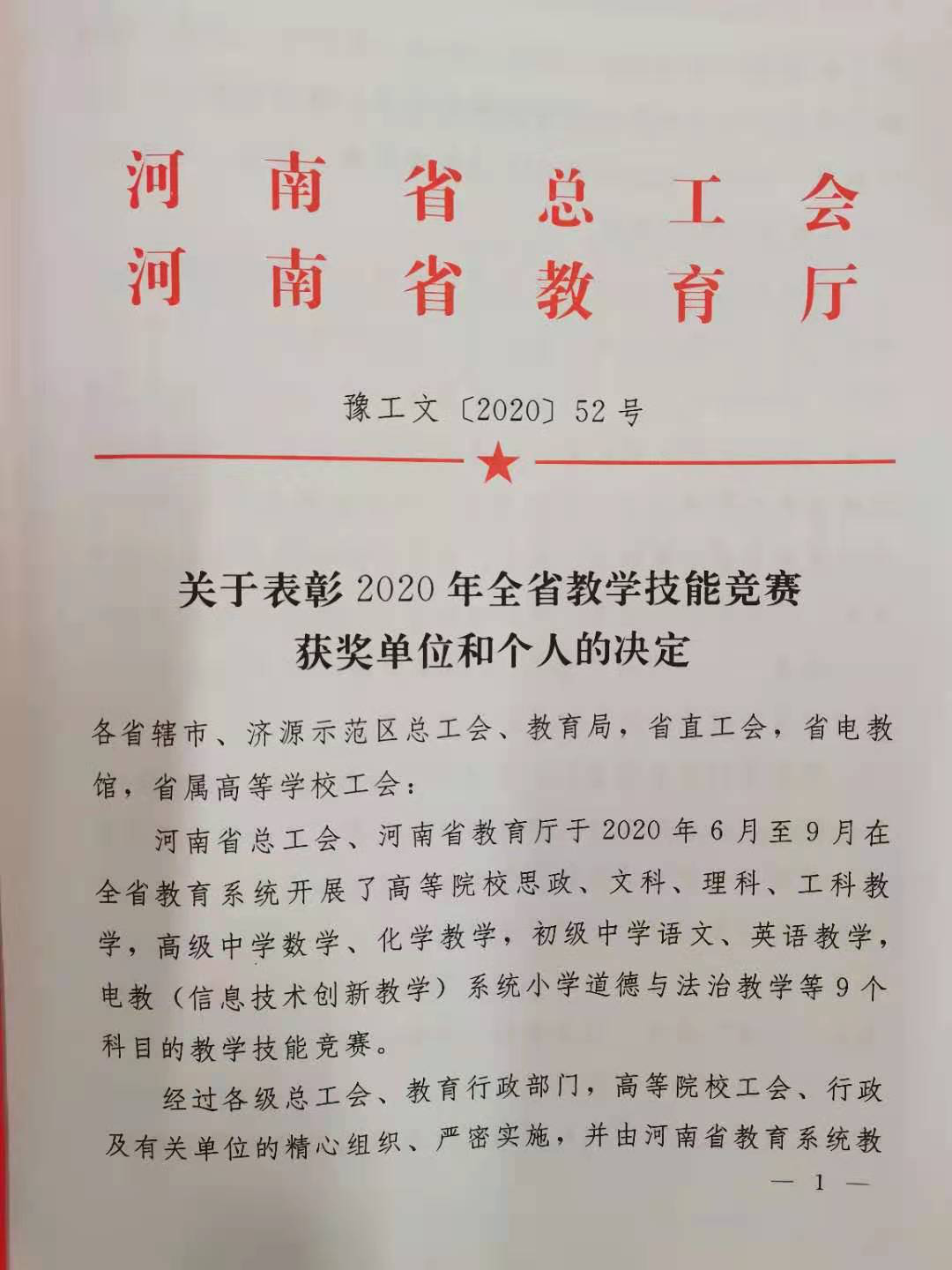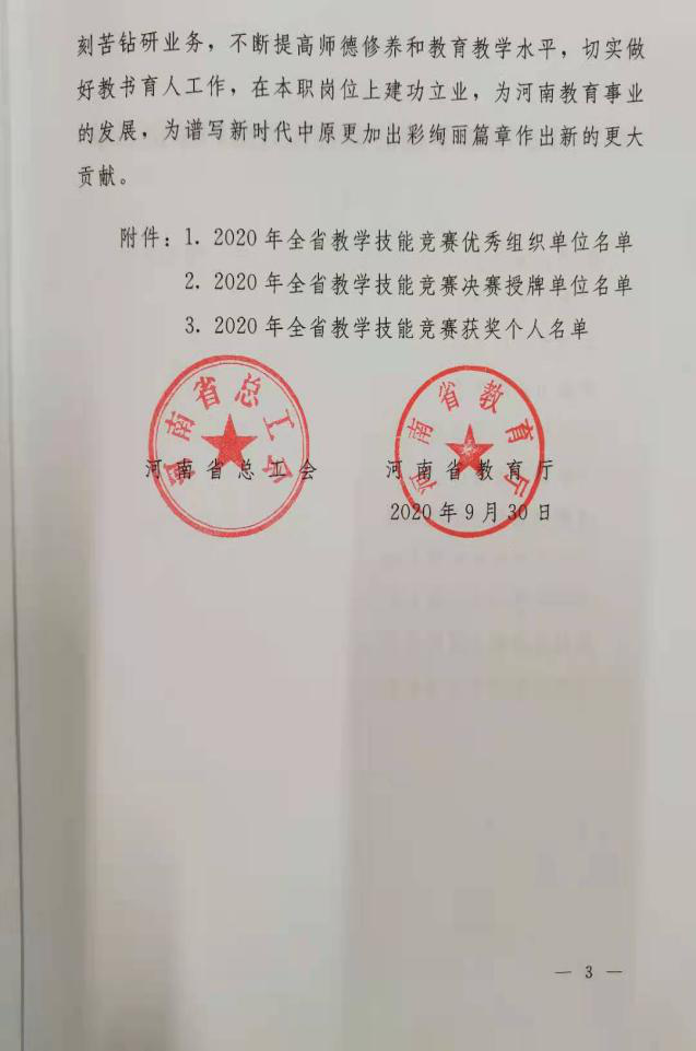 2020年河南省教育系统教学技能竞赛圆满结束。公司选送推荐的高校思政科目获一等奖,高校语文科目获得二等奖。