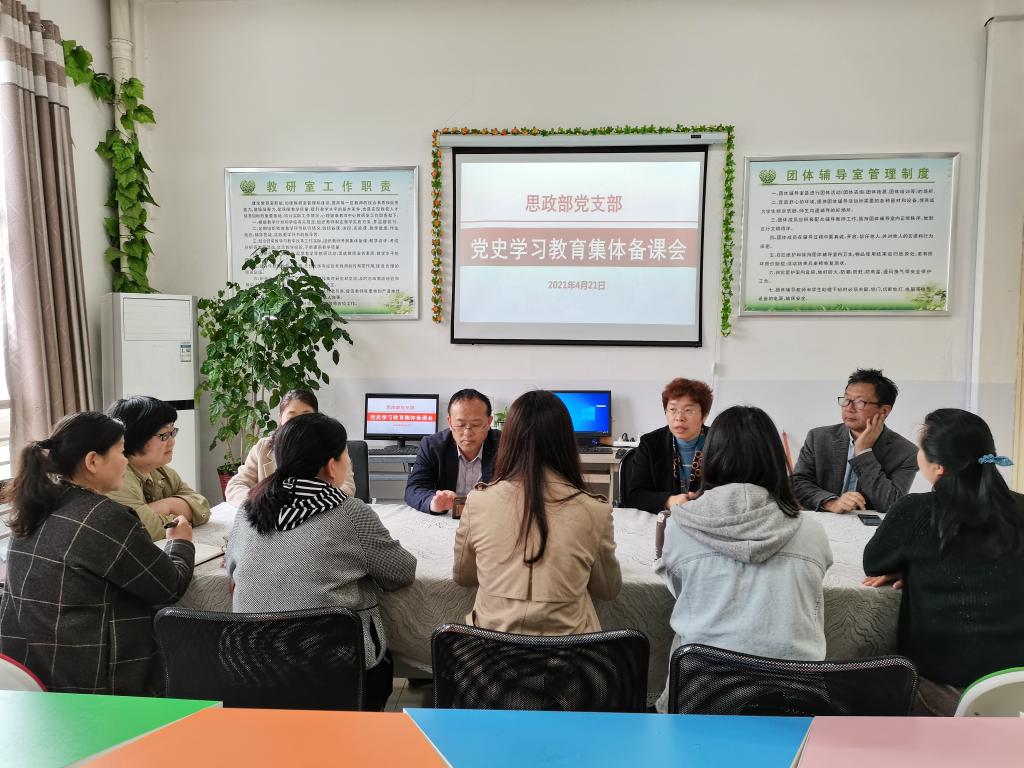 4月21日下午,思政部在行政楼四楼团体心理咨询室举行党史学习教育集体备课会。思政部党员骨干教师参加了会议,会议由思政部副主任韩凤梅主持。