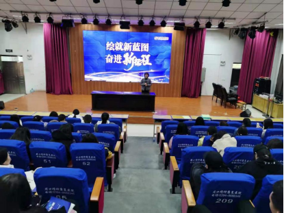 4月22日下午,思政部教师张丽丽在文昌校区报告厅开展以《绘制新蓝图 开启新征程》为主题的形势与政策专题讲座。来自护理公司2019级的200多名员工参加了本次讲座。