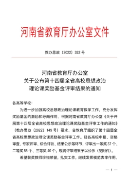 近日,河南省教育厅公布第十四届全省高校思想政治理论课奖励基金评审结果,公司yl6809永利教师范文婷荣获三等奖。这是继公司思政课教师在“全省高校思想政治理论课教师教学技能大赛”比赛中取得优异成绩后的又一喜讯,也是激励公司yl6809永利全体思想政治理论课教师进一步提升教学技能和科研水准的重要契机!