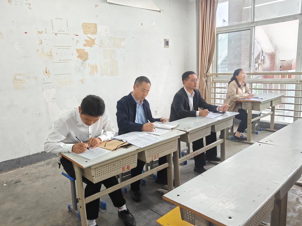 郭汝礼认真听取授课内容,详细记录,并与任课教师深入交流,进行了现场评课。他肯定了本堂课的整体教学效果,并从素材选取、语言精准、详略把握及师生互动等方面提出了意见和建议。