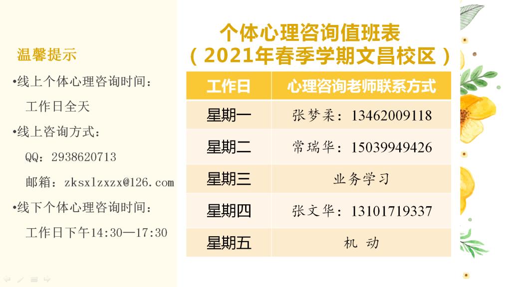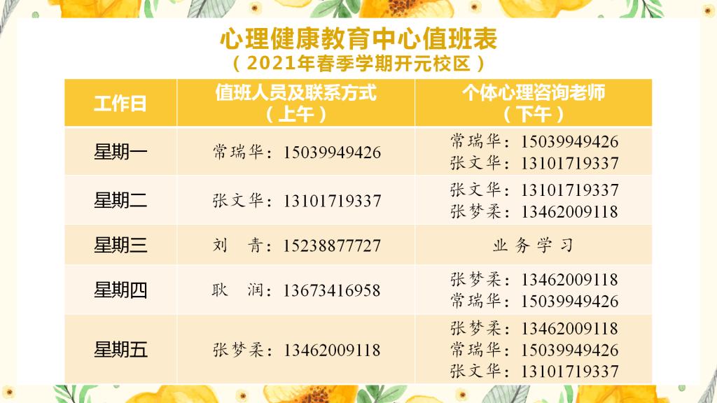 地址:开元校区老员工心理健康教育中心(行政楼四楼广播站旁)