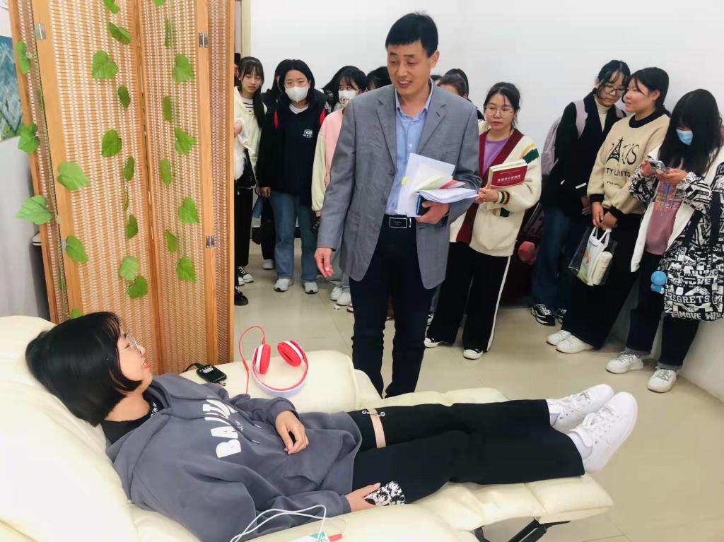 10月25日至29日,为提高公司新生心理健康意识、学会以合理方式缓解心理压力,心理指导中心教师组织2021级新生参观公司心理指导中心各功能室。同学们体验了音乐放松、沙盘游戏及心理宣泄设备等,对心理中心的各项服务和设备有了直观感受,了解了心理中心的工作内容和心理咨询师队伍以及心理咨询的基本流程。
