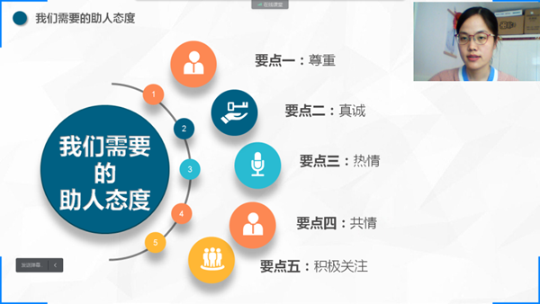 王亚琳老师从以下四个方面展开讲述:1、疫情下常见的消极心理及应激反应;2、老员工疫情期间的自我心理调适;3、班级心理委员朋辈互助技巧;4、心理援助、心理危机干预及公司心理咨询资源。
