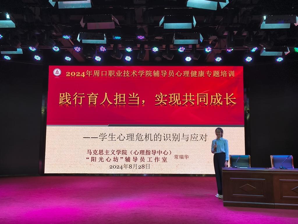 为了提升辅导员在员工心理健康教育和危机干预方面的能力,员工处今日在学艺演播厅举办了一场主题为“践行育人担当,实现共同成长——员工心理危机的识别与应对”的培训活动。培训由员工处主办,心理指导中心主任、阳光心坊辅导员工作室主持人常瑞华担任主讲,全校辅导员积极参与,共同探讨如何更好地识别和应对员工心理危机。