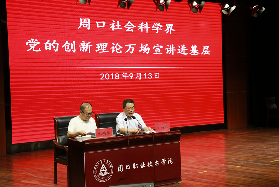 2018年9月13日下午,周口社科界党的创新理论万场宣讲进基层活动在公司开元校区学术报告厅举行。周口师范公司公司党总支副书记、副教授张鸿韬以《坚定文化自信》为题作宣讲报告。