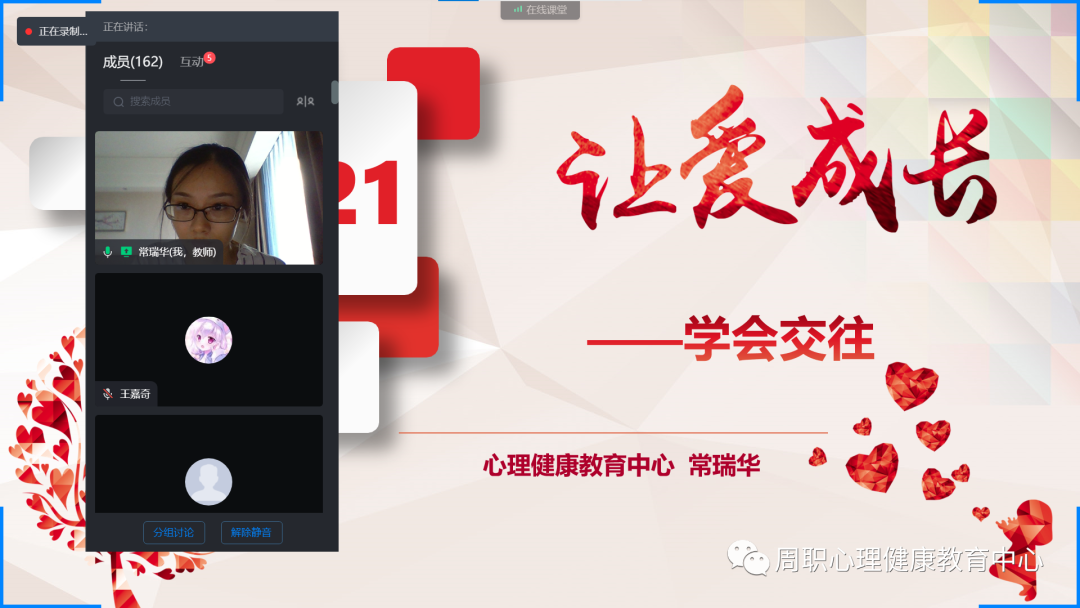 9月22—23日,yl6809永利心理健康教育中心常瑞华老师以“学会交往 让爱成长”为主题,在学习通平台为医公司821名2021级新生讲授了心理开学第一课。