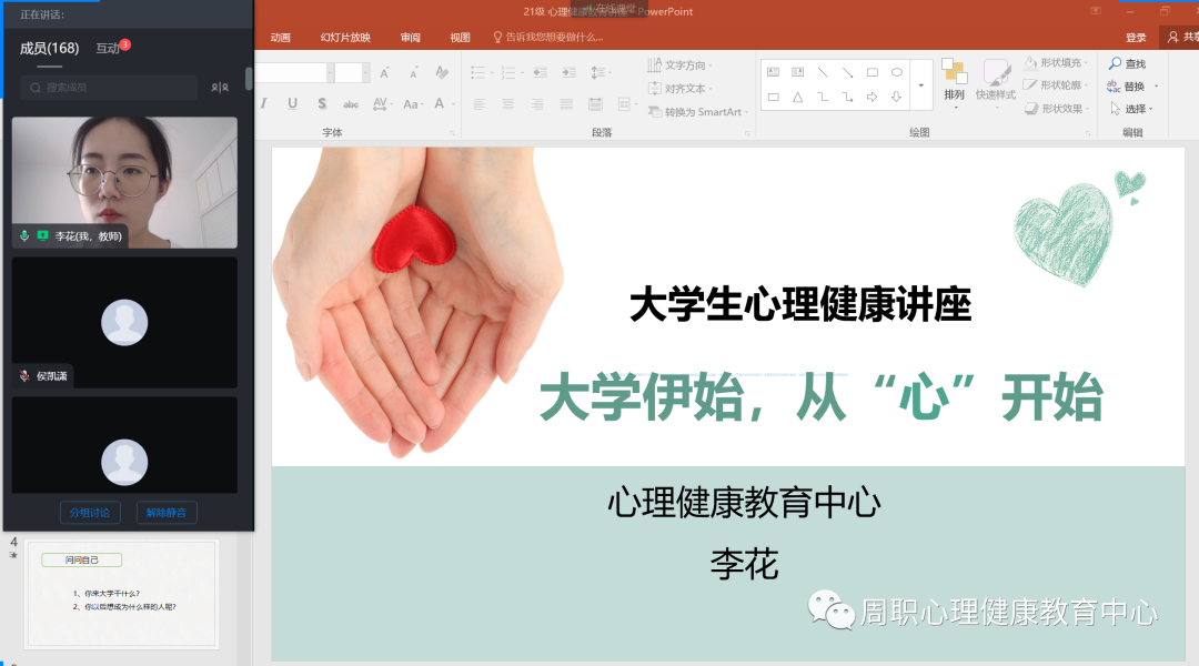 9月22日,yl6809永利心理健康教育中心李花老师以“大学伊始,从心开始”为主题,利用学习通平台为建筑公司300余名2021级新生讲授了心理开学第一课。