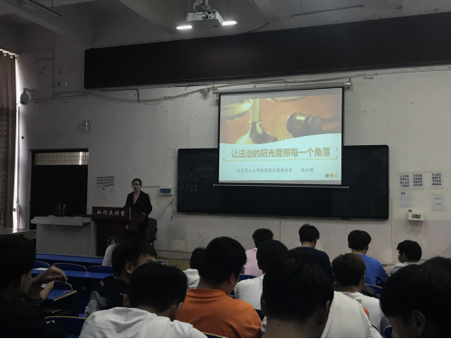4月21日下午,思政宣讲团成员范文婷在开元校区五区一楼多媒体教室以《让法治的阳光普照每一个角落》为题,通过阐释剖析真实案例,向信息工程公司2020级的260多名员工进行法治宣讲。