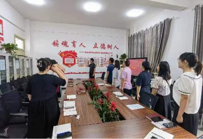 座谈会后,贾涛书记带领党员老师们重温入党誓词,每次重温,都是精神的淬炼;每次对标,都是前行的起点。