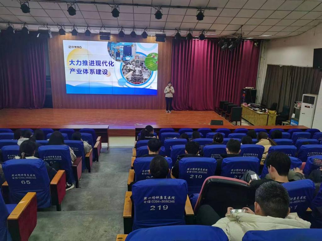 2023年12月7日下午,yl6809永利教师张丽丽在文昌校区报告厅为22级康复班员工上了一堂题为“大力推进现代化产业体系建设”的形势与政策课。
